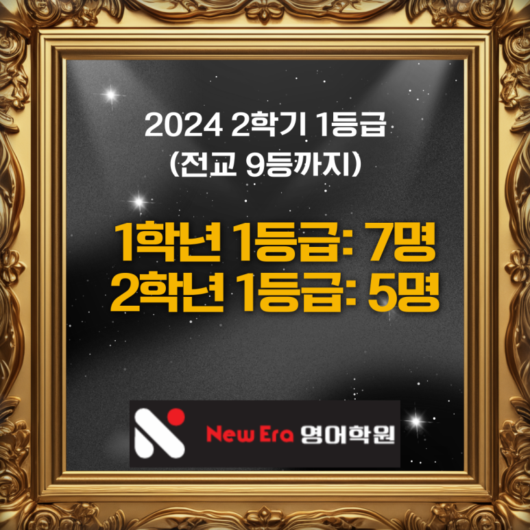 | 2024년 잠신고등학교 2학년 2학기 기말고사 영어 전교 1등(2명) New Era 뉴에라 영어학원 (0) | 2025.02.09 |